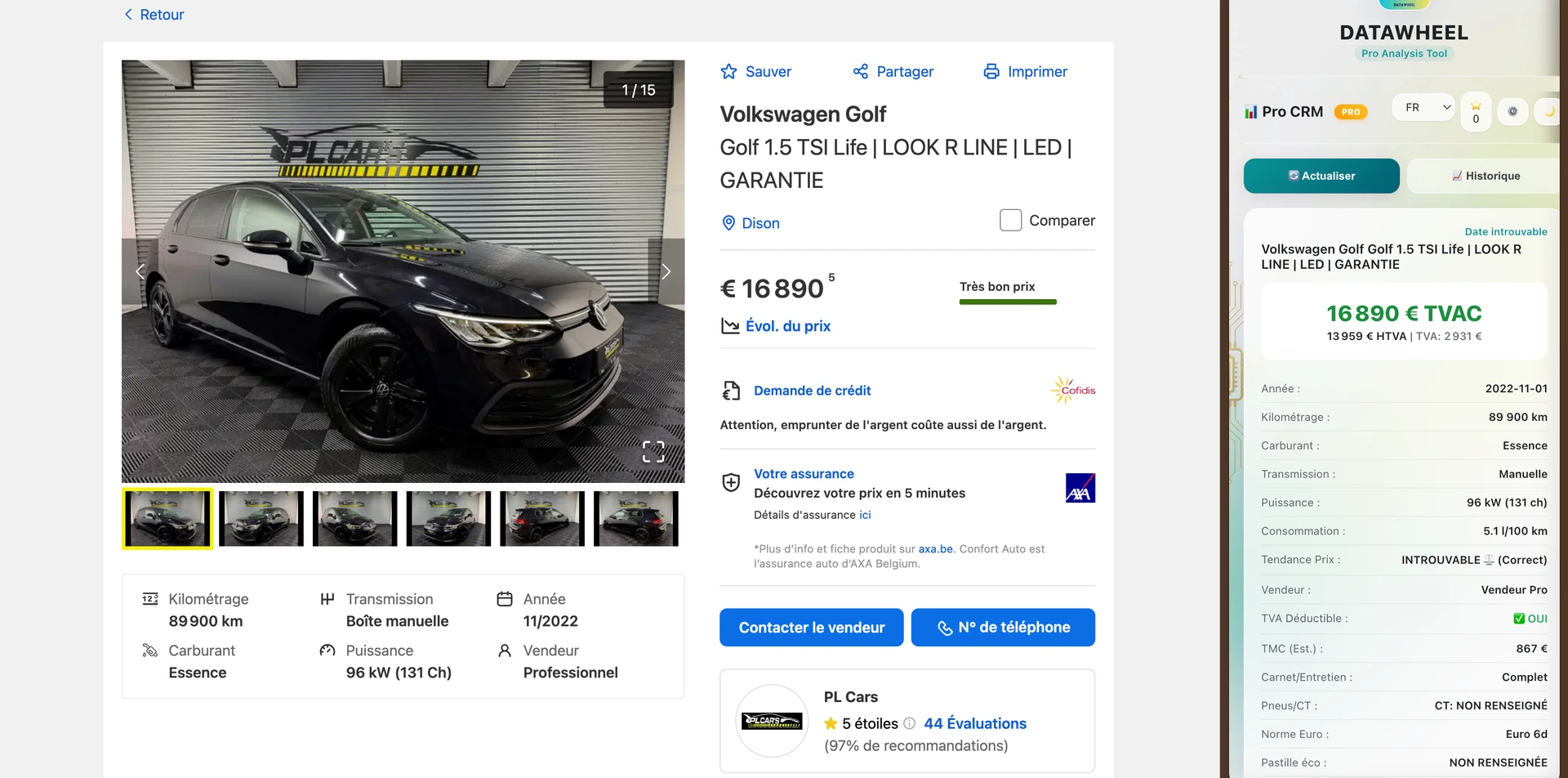 Notre extension Chrome est conçue pour fonctionner sur les annonces des plateformes AutoScout24 et Mobile.de. Une fois installée sur votre navigateur, la barre d'outils s'affiche automatiquement lorsque vous consultez un véhicule.
