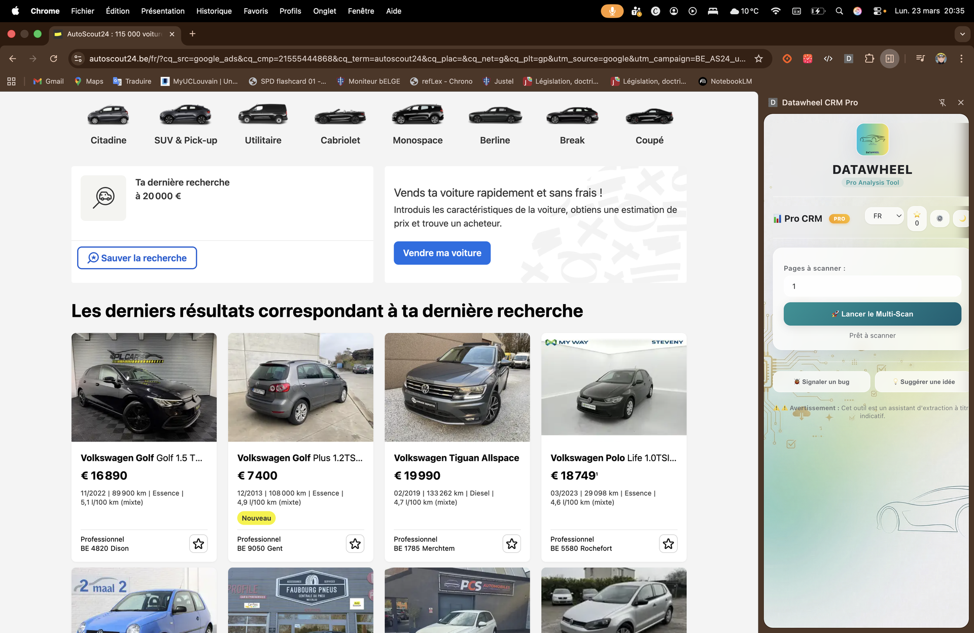 L'extension analyse les annonces AutoScout24 et Mobile.de directement dans votre Navigateur en temps réel.